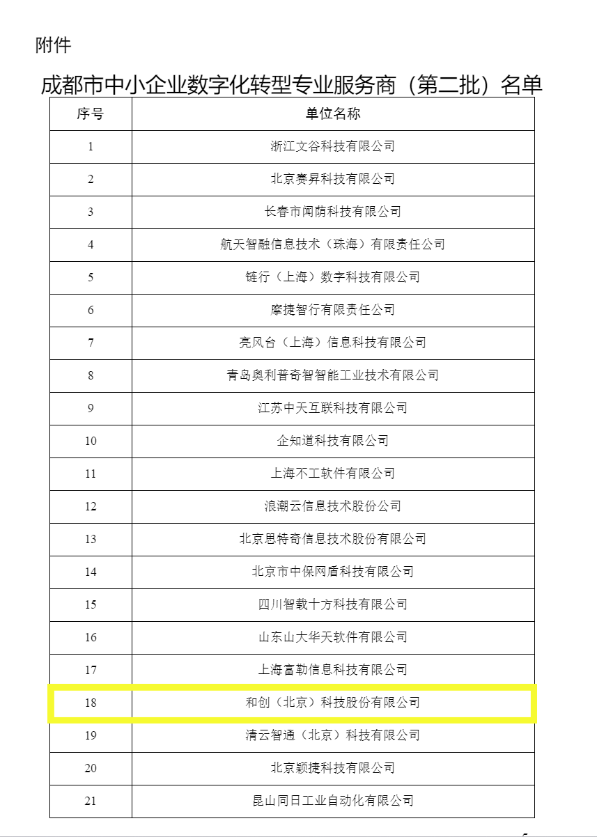 紅圈新聞?|?再入選成都!和創科技入選成都市第二批中小企業數字化轉型服務商