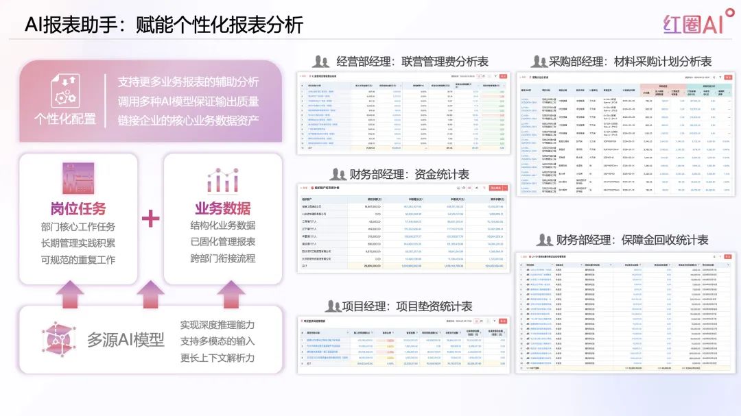 AI報表助手與紅圈系統的核心業務數據深度集成,確保數據分析的準確性和及時性。