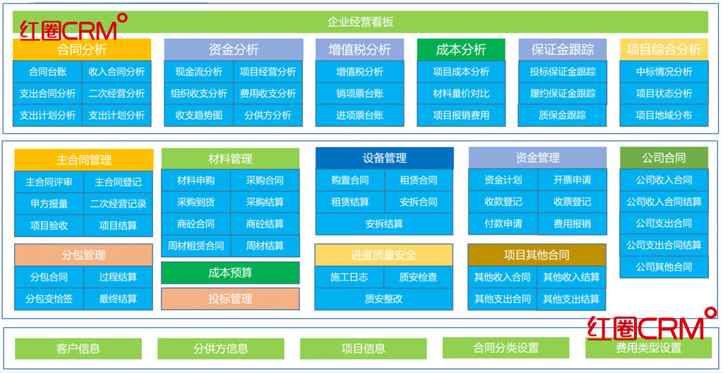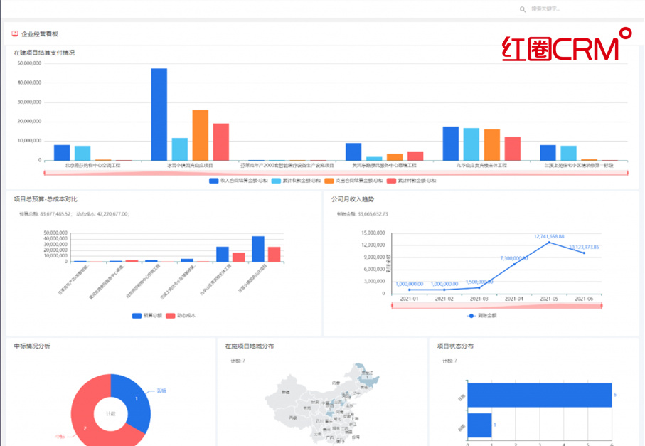 紅圈CRM v2.0專門服務(wù)于建筑工程企業(yè)項目管理,功能更聚焦于建筑工程項目經(jīng)營,六大工程業(yè)務(wù)閉環(huán),為建筑工程企業(yè)的經(jīng)營結(jié)果負責(zé)。