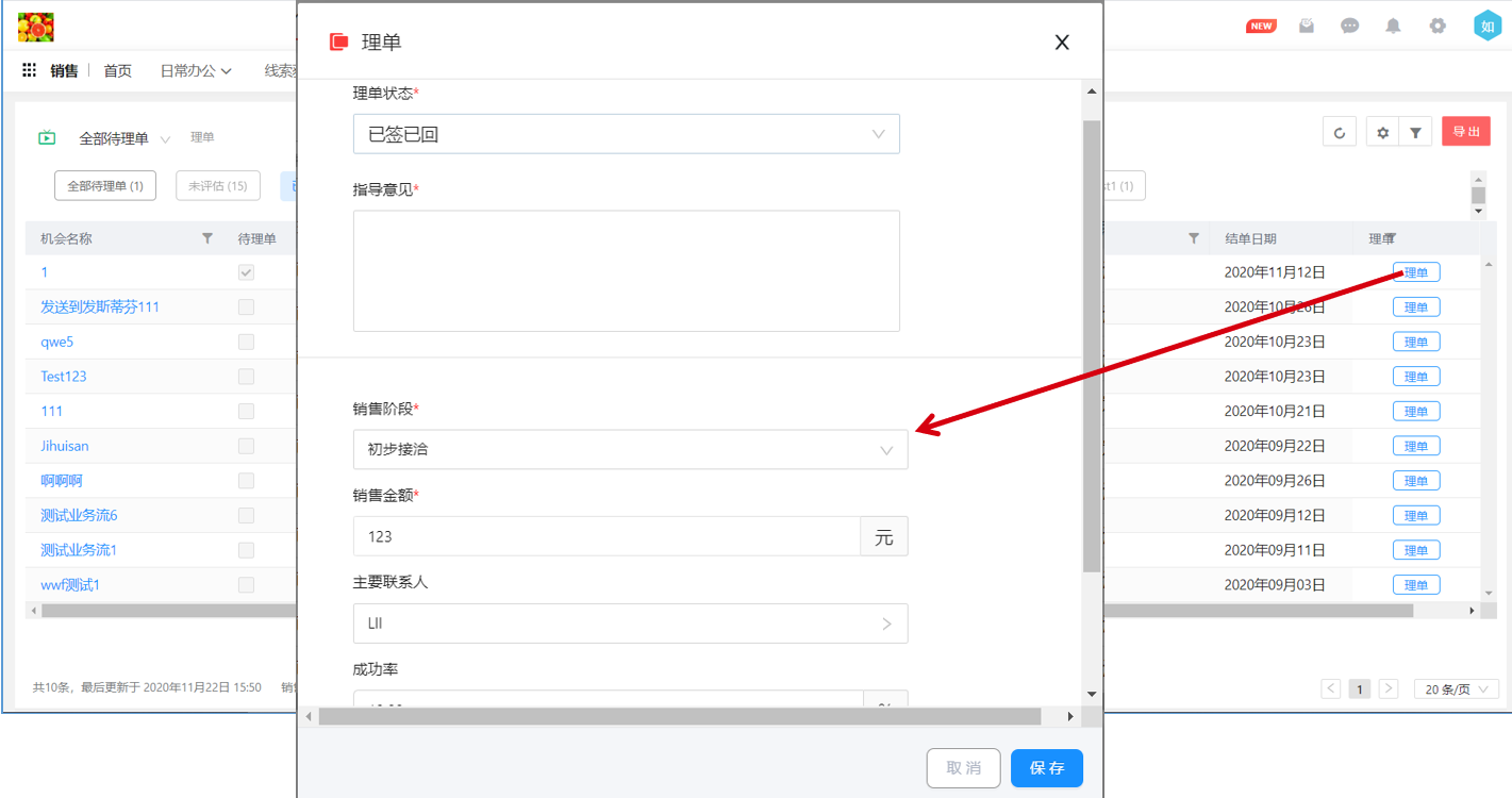 新版的理單功能在理單完成后數(shù)據(jù)不會(huì)消失,直接顯示到指定的理單階段,方便管理人員進(jìn)行查看。理單操作不僅限于負(fù)責(zé)人和直屬上級(jí),也可以由其他有權(quán)限的人理單。這樣更高級(jí)別的管理人員也可以基于實(shí)際情況對(duì)銷售人員進(jìn)行直接的指導(dǎo)。同時(shí),新版本還支持重復(fù)理單,方便管理者對(duì)一線銷售人員多次指導(dǎo)。