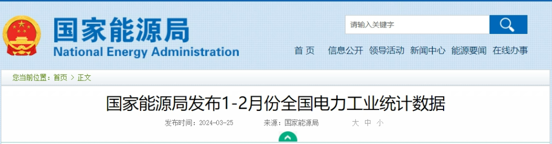 3月25日,國家能源局發布1-2月份全國電力工業統計數據,數據顯示: