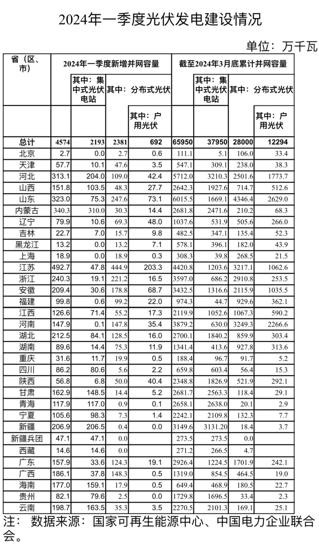 5月6日,國家能源局公布2024年一季度光伏發電建設情況。
