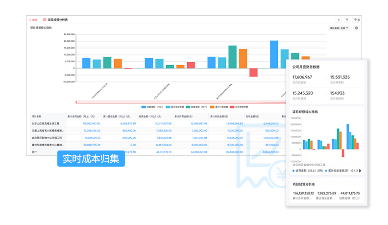 動態成本管理,實時成本歸集,隨時掌握項目收支、盈利狀況。